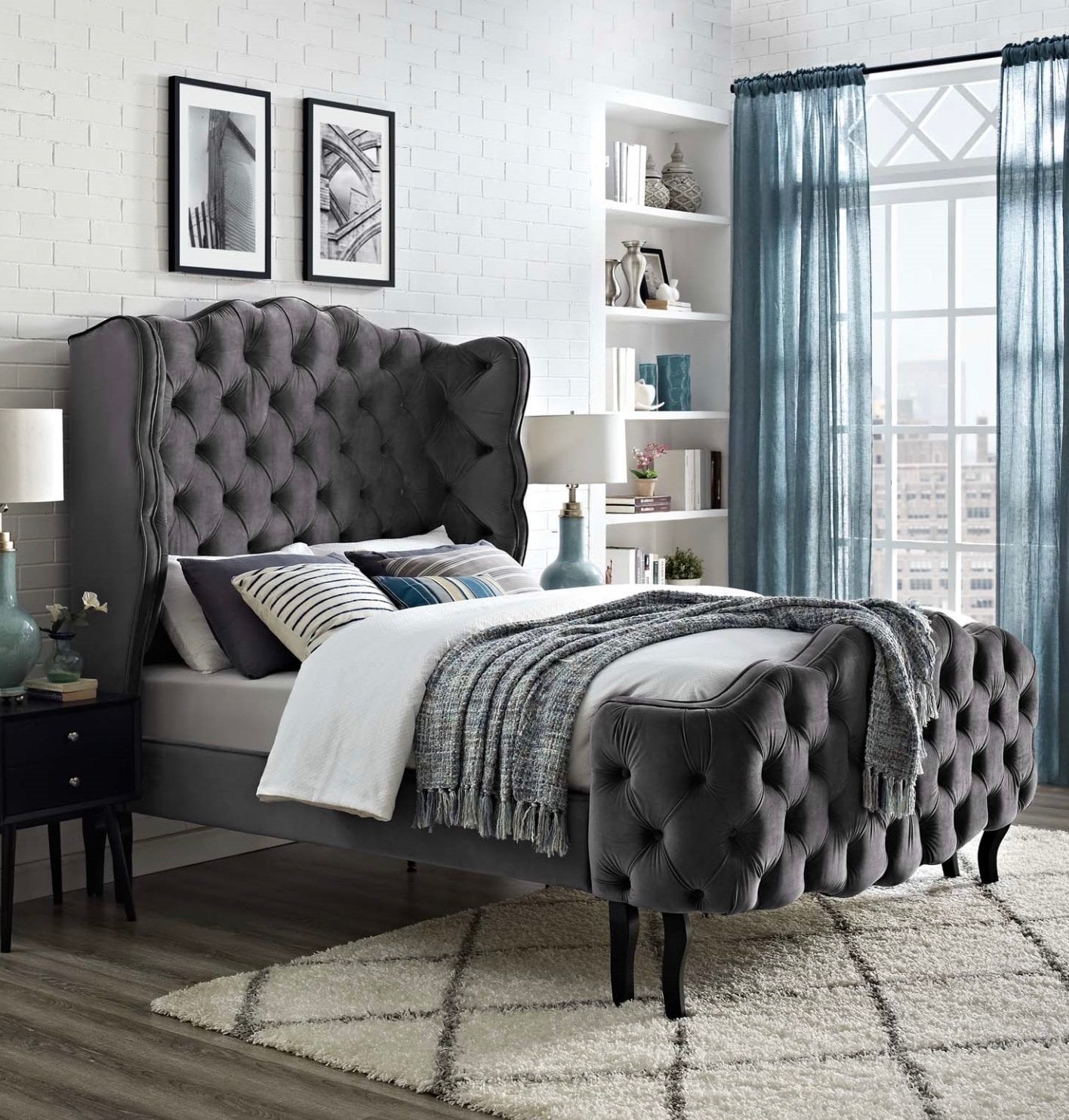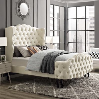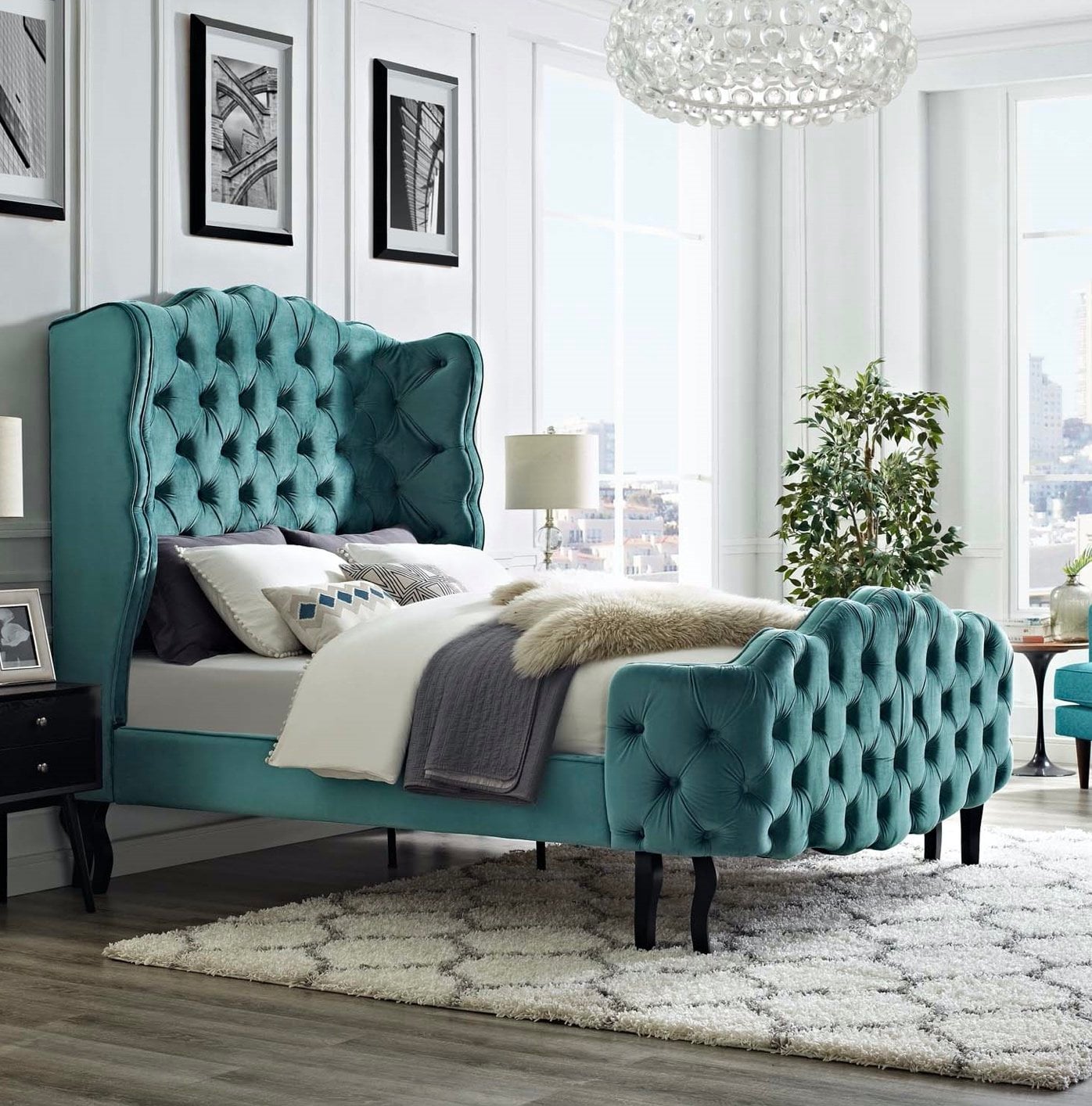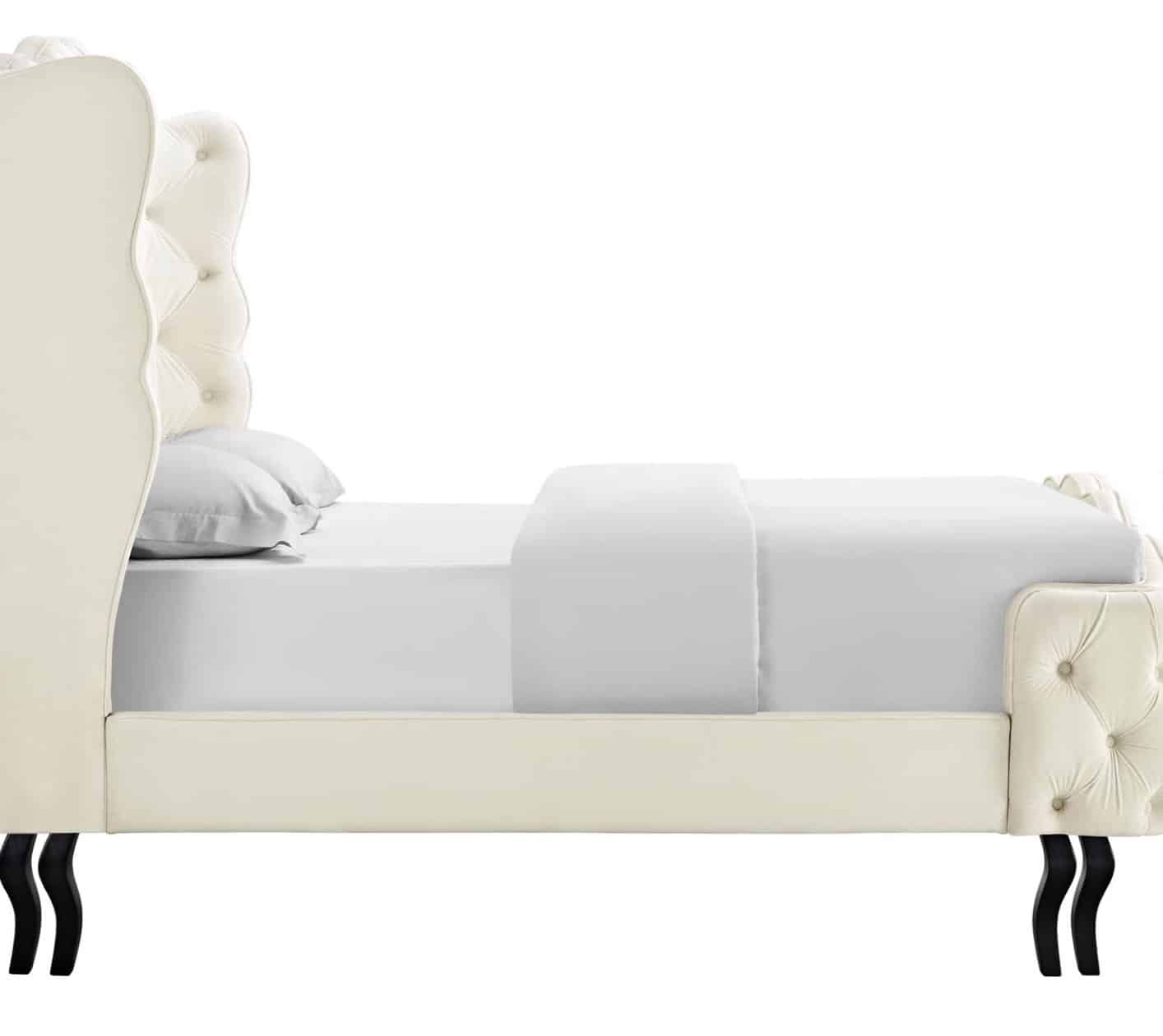 Make comfortable sleep and luxurious style the focal point of your master or guest bedroom with the Violette Queen Performance Velvet Tufted Wingback Platform Bed. An updated twist on Victorian-area design, the queen wingback headboard, footboard, and sideboards of comes upholstered in luxurious performance velvet, made with stain-resistant polyester fabric with a generously padded, deep button-tufted diamond design and elegant form. Resting atop black-stained wood cabriole legs with non-marking foot caps, and reinforced center beam, Violette features stain-resistant velvet polyester granting soft texture and comfortable support. This queen platform bed comes with a wood slat support system, eliminating the need for a box spring and providing a sturdy mattress foundation for memory foam, latex, innerspring, and hybrid mattresses.