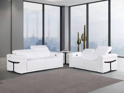 Divantalia Tustin Modern White Italian Recliner Leather Sofa Set