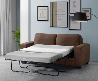 The Zoilos brown fabric sleeper sofa has a modern simplistic design in brown fabric upholstery with a functional pull out sofa bed. This sofa is perfect for having extra guests with this sleeper couch and mattress.